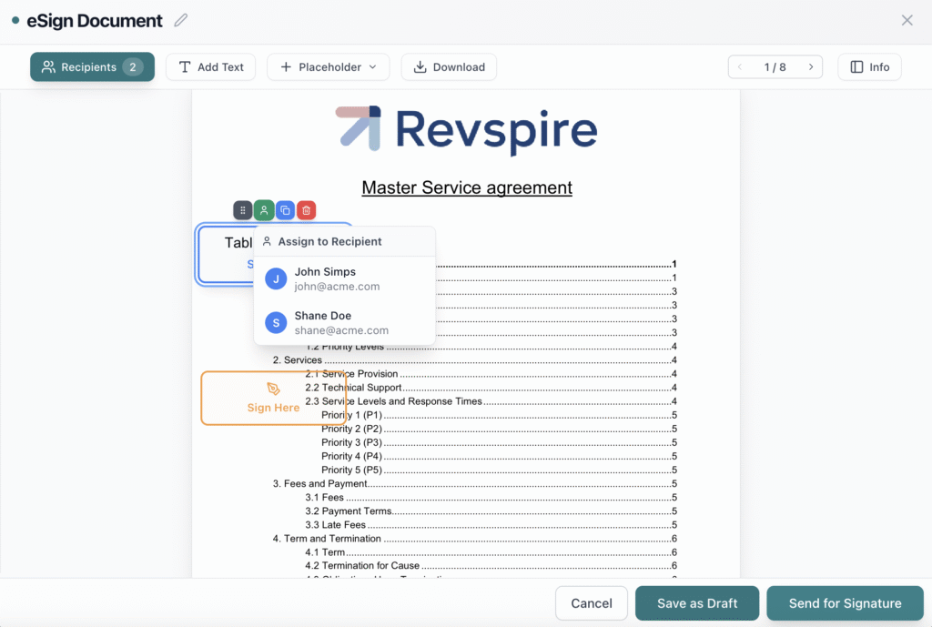 Enhance engagement by giving clients a seamless signing experience while capturing insights into document interactions. Smart e-signature technology enables faster approvals, fewer errors, and more predictable revenue recognition.